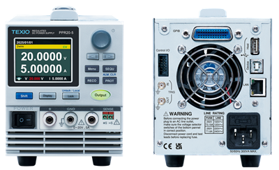 PPRシリーズは、1mVの電圧設定分解能、1μA の最大電流設定分解能をもつ低ノイズなプログラム直流電源です。各種保護機能、電子負荷機能、リモートセンシング機能、スルーレート制御機能、シーケンス機能とUSB/LANを標準装備したコストパフォーマンスに優れた電源となっています